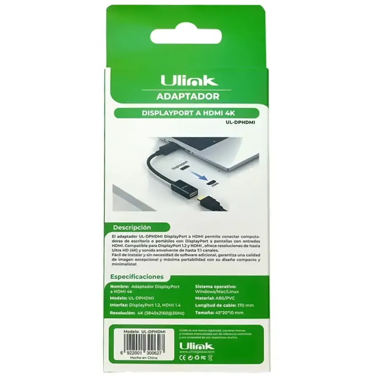 Adaptador de video DisplayPort Macho a HDMI hembra Color Negro / mod. UL-DPHDMI