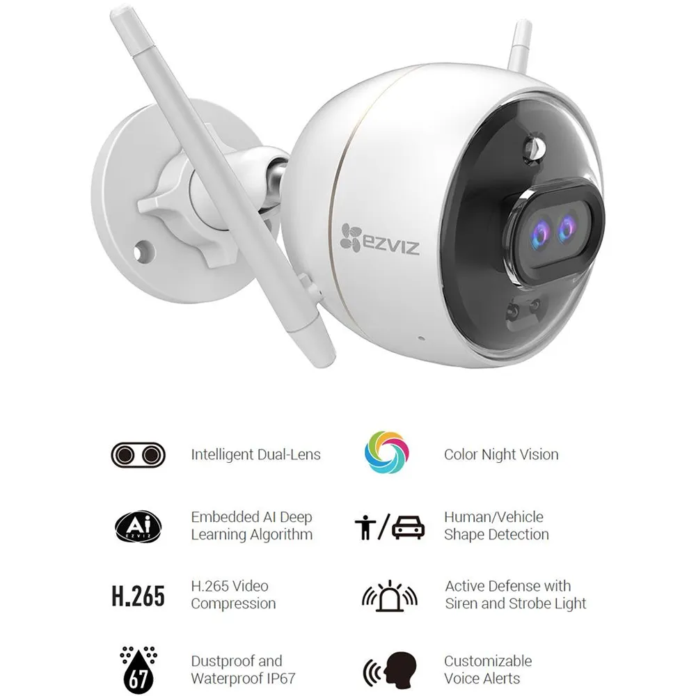Cámara de seguridad EZVIZ C3X con Wi-Fi de doble lente inteligente para exteriores con AI Integrada full HD - EZ-C3XFHD