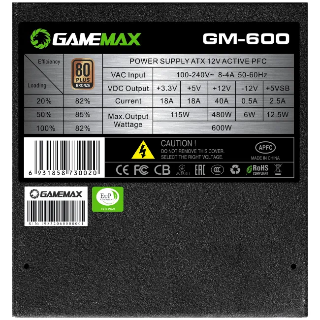Fuente de poder Game Max 600W Semi Mudular, SATA Connectors: 6 - GM-600