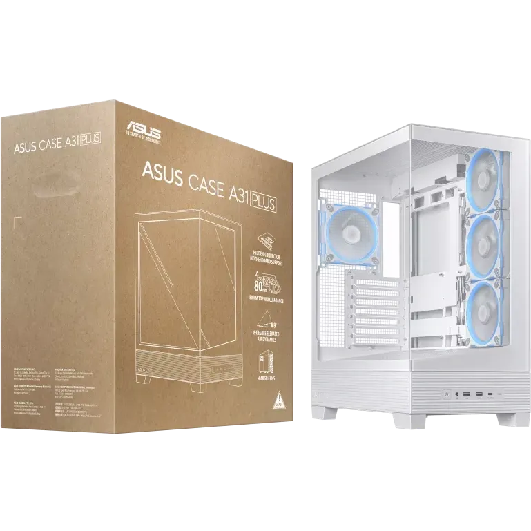 Gabinete Gamer A31 Plus, Mid Tower, Vidrio Templado, Incluye 4 Ventiladores ARGB, Blanco - 90DC00R3-B18000
