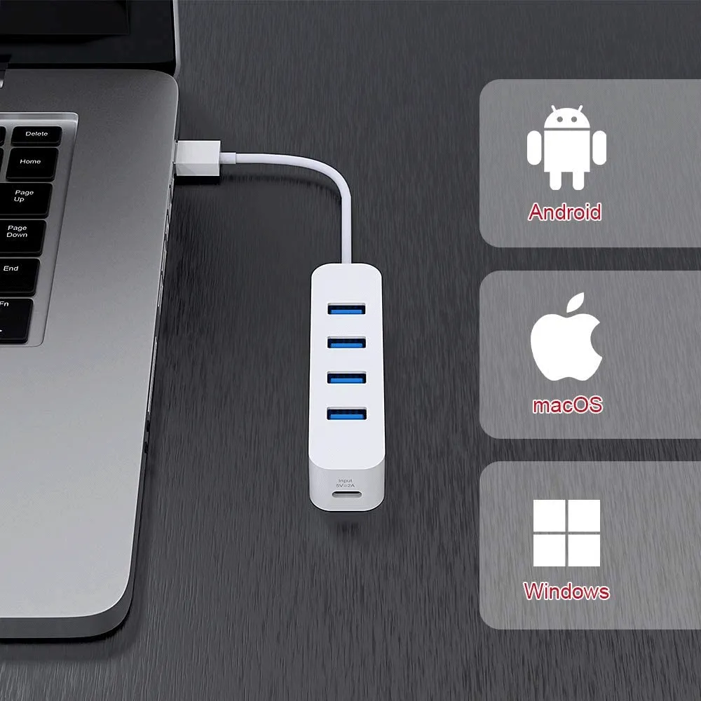 HUB USB 3.0 4 Puertos. 5Gbps USB Splitter para Laptop, Macbook, MacPro, Mac Mini, iMac, Surface Pro, XPS,PC, Flash drive, Mobile hdd, Blanco pn: B08J7SFMRH