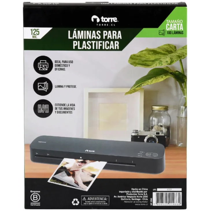 Láminas Torre para plastificar Carta 125 Mic Torre de 100 unidades - 7806505014664