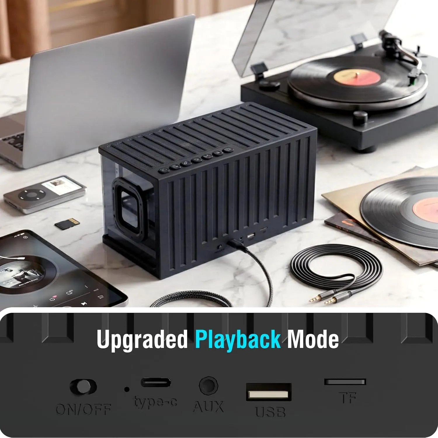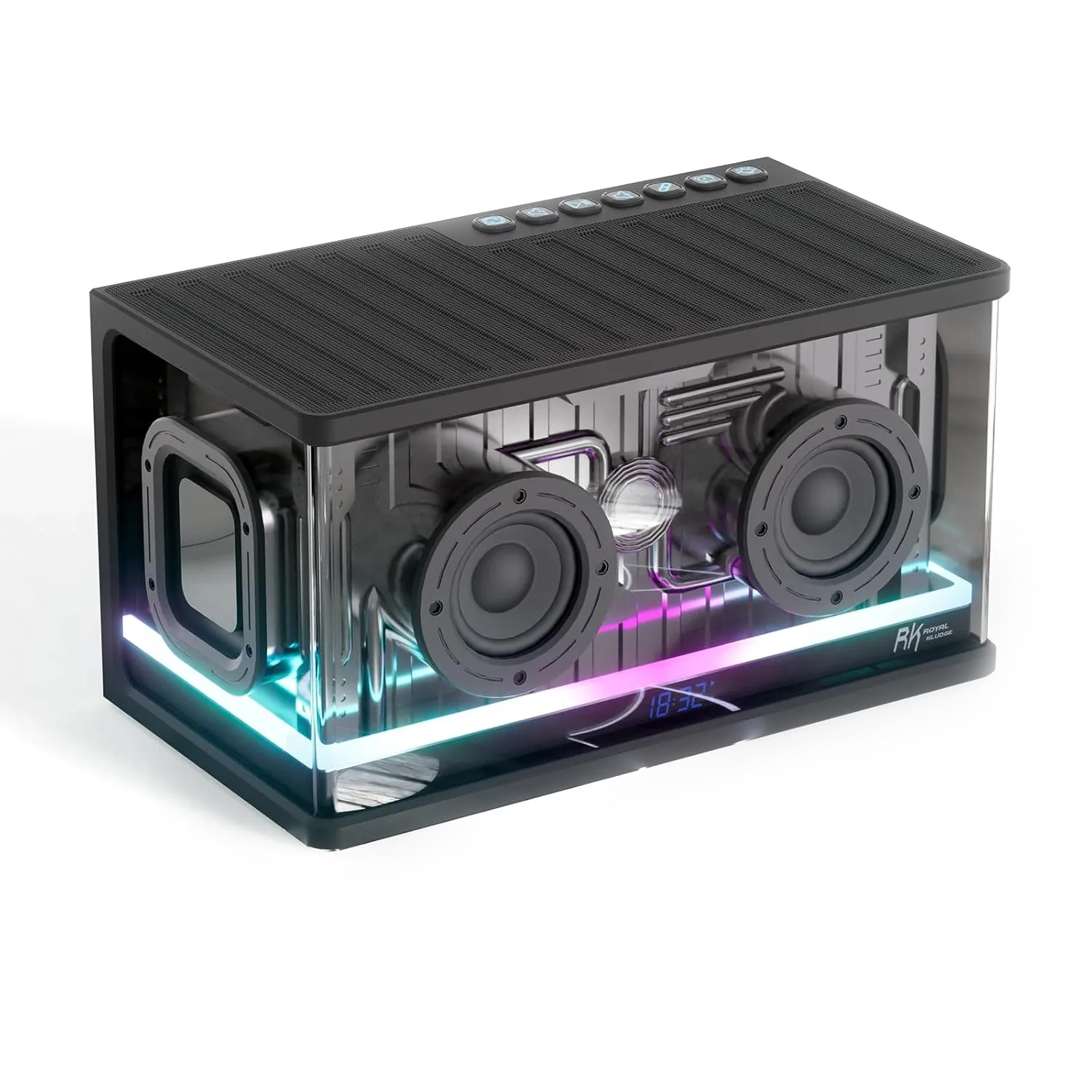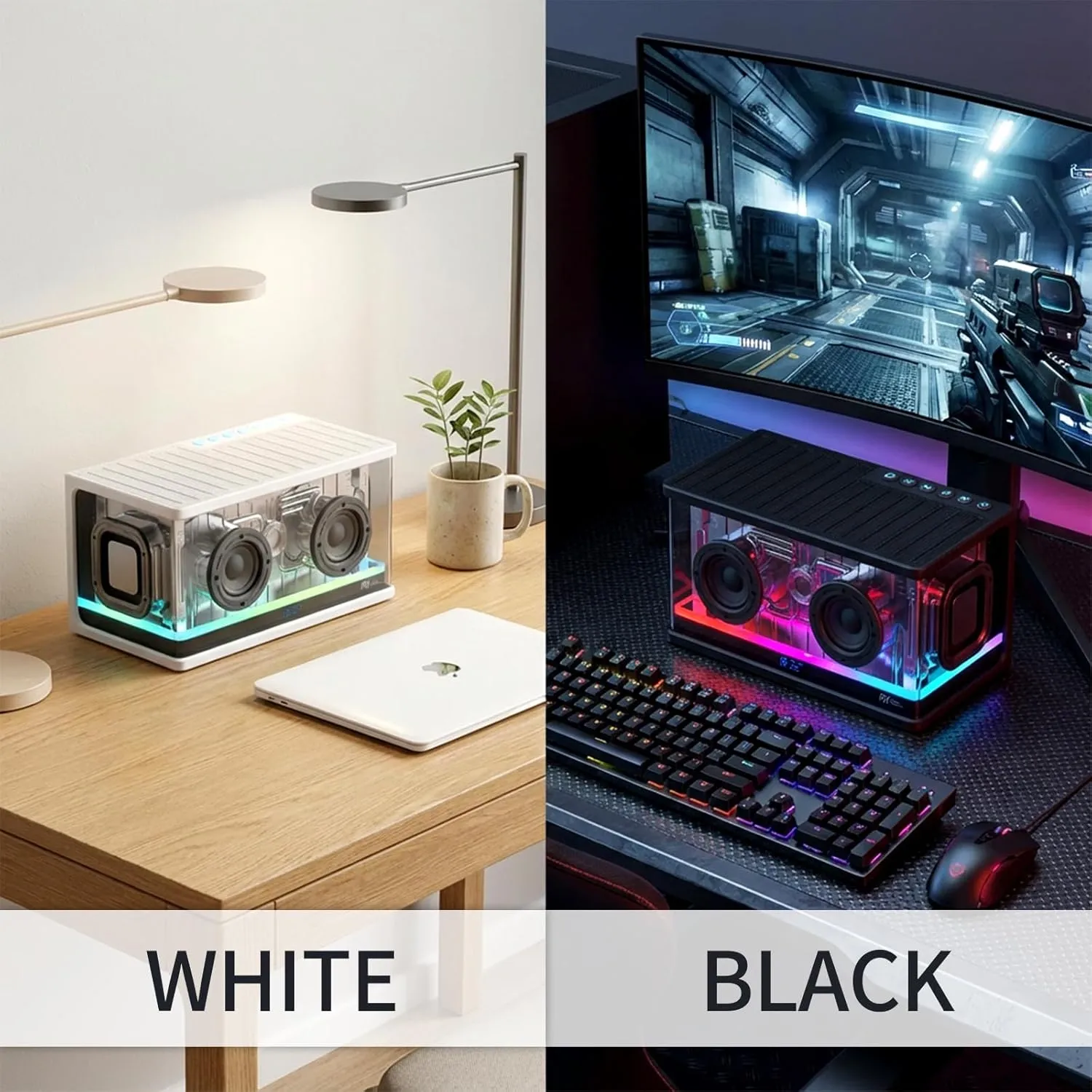 Parlante Bluetooth 40W Sound System Graves mejorados altavoz de escritorio portátil con sonido estéreo inalámbrico, Luz RGB, emparejamiento TWS, NegroRK SH100 Black