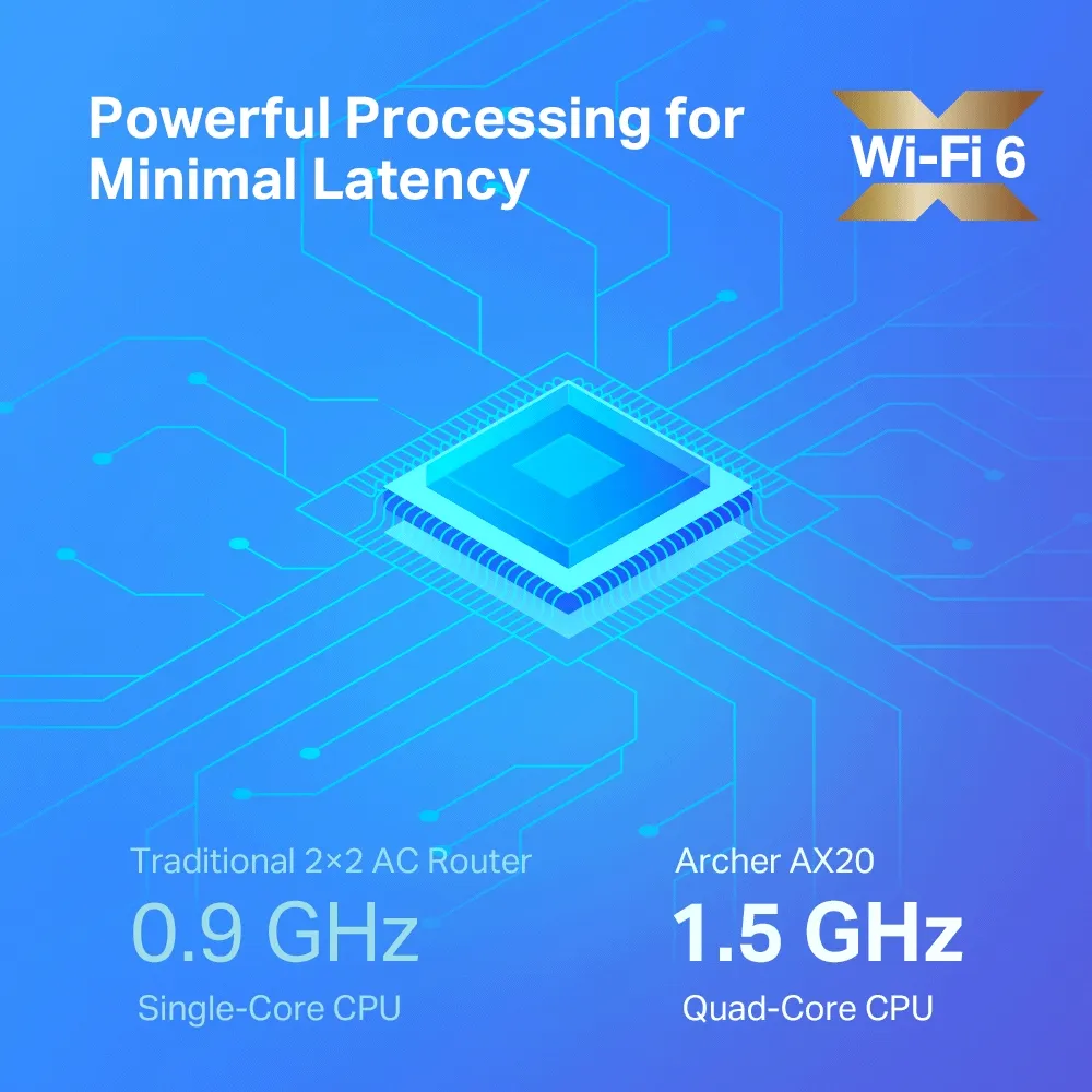 Procesamiento de cuatro núcleos : la potente CPU de cuatro núcleos de 1,5 GHz garantiza que las comunicaciones entre su enrutador y los dispositivos conectados sean fluidas.