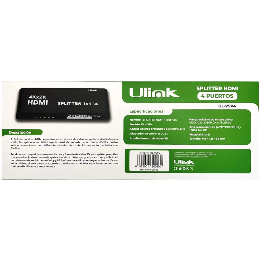 Splitter de video HDMI 4 puertos / mod. UL- VSP4 - 0130080