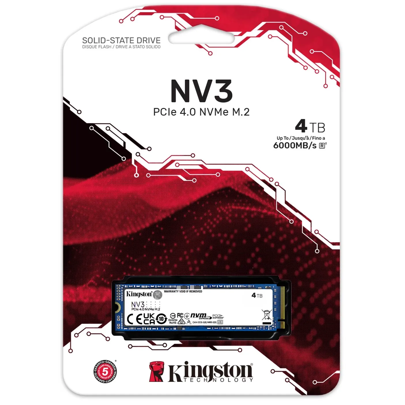 SSD M.2 4TB NV3 PCIe 4.0 NVMe M.2 2280, Lectura 6000MB/s, Escritura 5000MB/s - SNV3S/4000G