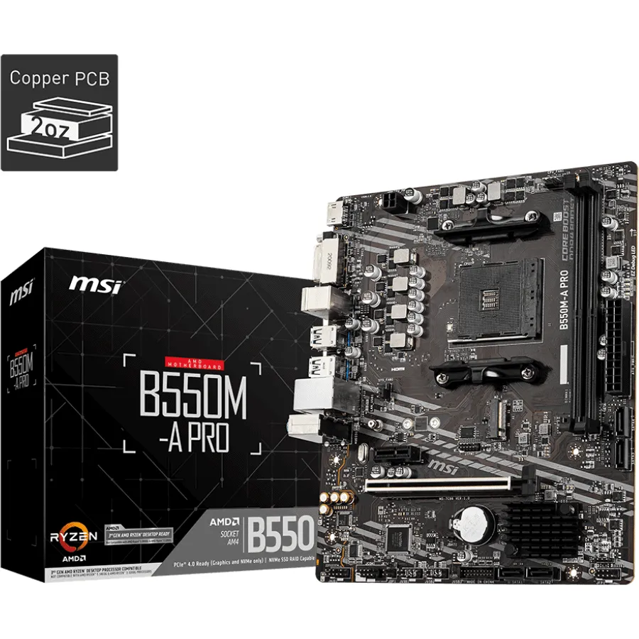 Tarjeta Madre B550M-A PRO, AMD Socket AM4, 2xDDR4, 4xSATA, 1xM.2, Micro-ATX - 911-7C96-043