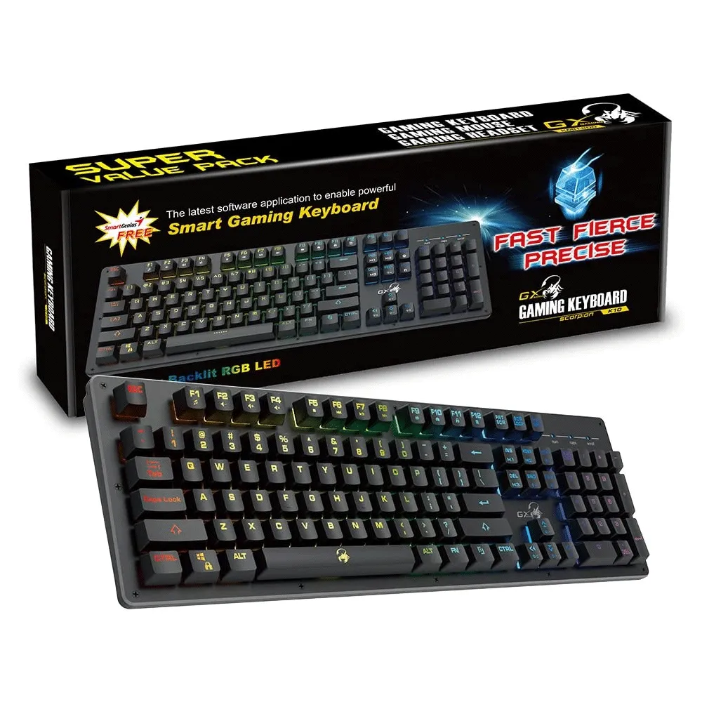 Teclado Gamer Inteligente Genius K10 Membrana sensación mecánica, retroiluminación LED RGB  - 31310003400